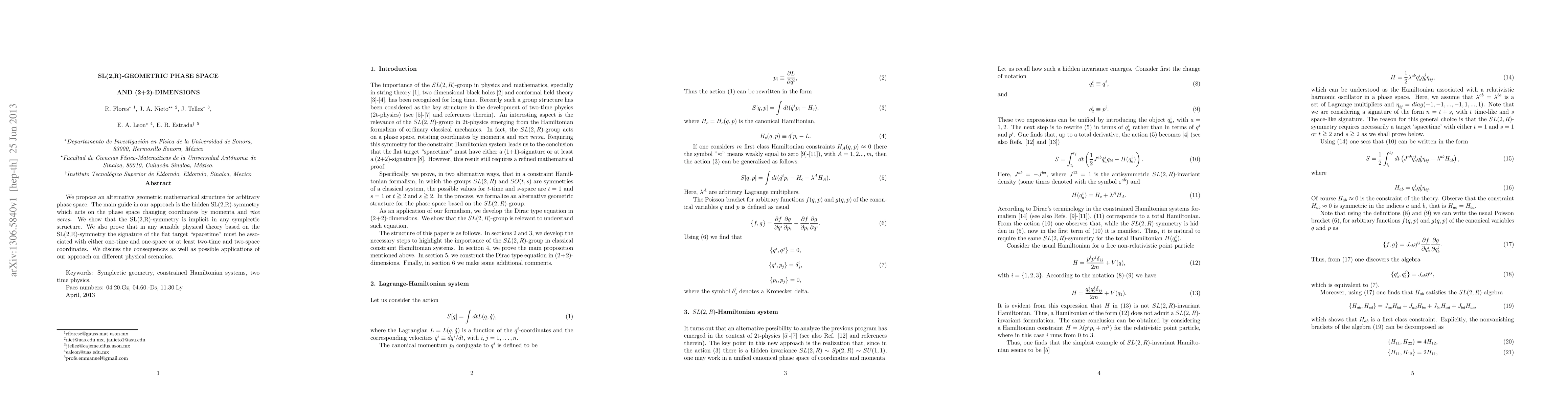 We propose an alternative geometric mathematical structure for arbitrary phase space. The main guide in our approach is the hidden SL(2,R)-symmetry which acts on the phase space changing coordinates by momenta and vice versa. We show that the SL(2,R)-symmetry is implicit in any symplectic structure. We also prove that in any sensible physical theory based on the SL(2,R)-symmetry the signature of the flat target "spacetime" must be associated with either one-time and one-space or at least two-time and two-space coordinates. We discuss the consequences as well as possible applications of our approach on different physical scenarios.