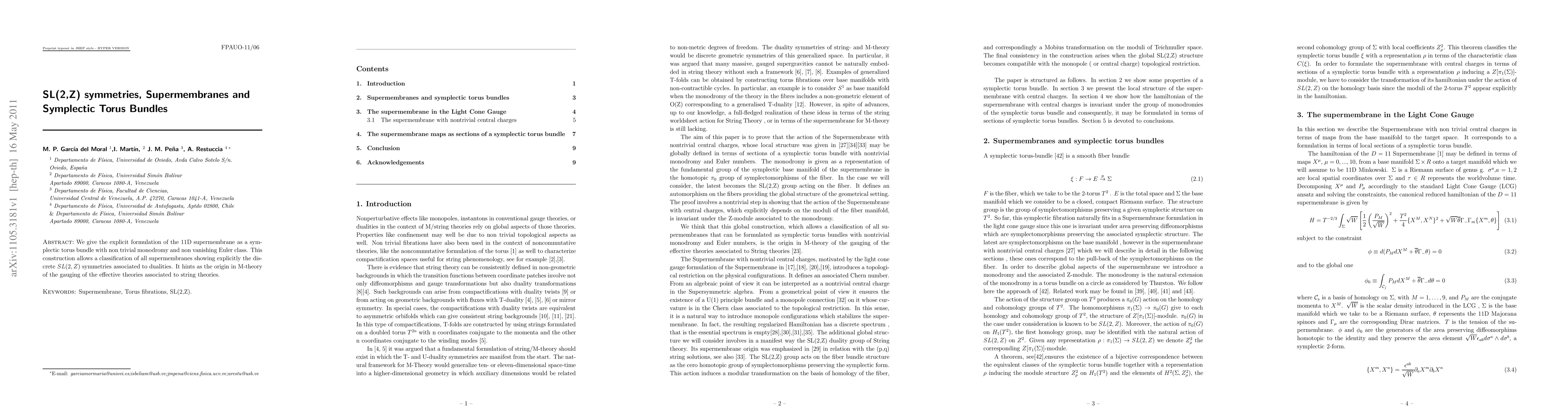 We give the explicit formulation of the 11D supermembrane as a symplectic torus bundle with non trivial monodromy and non vanishing Euler class. This construction allows a classification of all supermembranes showing explicitly the discrete SL(2,Z) symmetries associated to dualities. It hints as the origin in M-theory of the gauging of the effective theories associated to string theories.