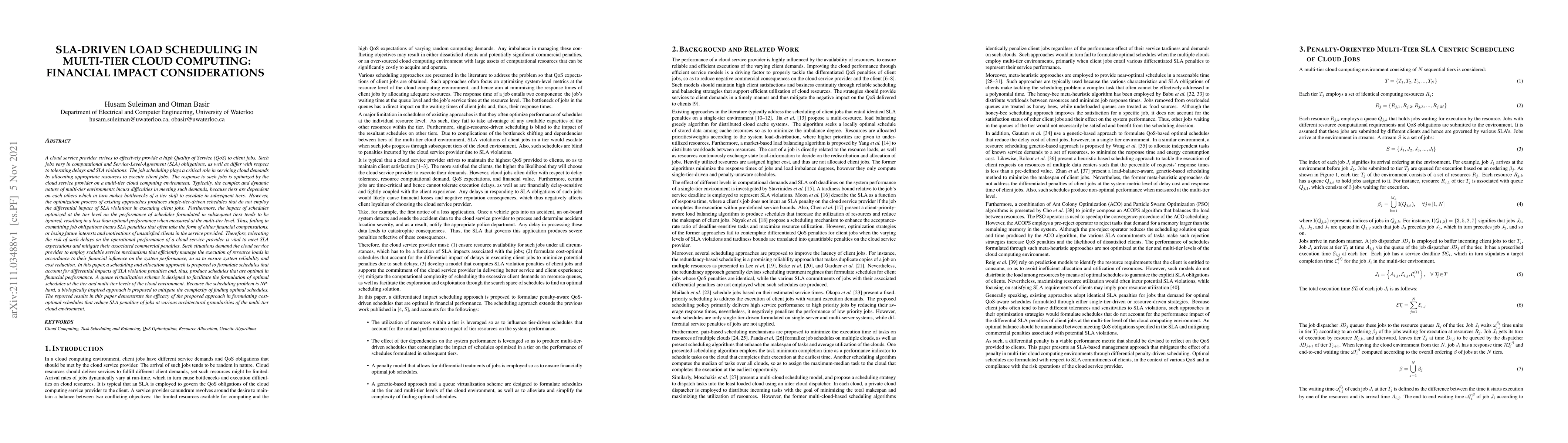 This paper proposes a scheduling and allocation approach for multi-tier cloud computing to optimize job execution while considering SLA violation penalties, aiming to improve financial performance. It introduces a queue virtualization scheme and a biologically inspired algorithm to tackle the NP-hard problem of finding optimal schedules.
