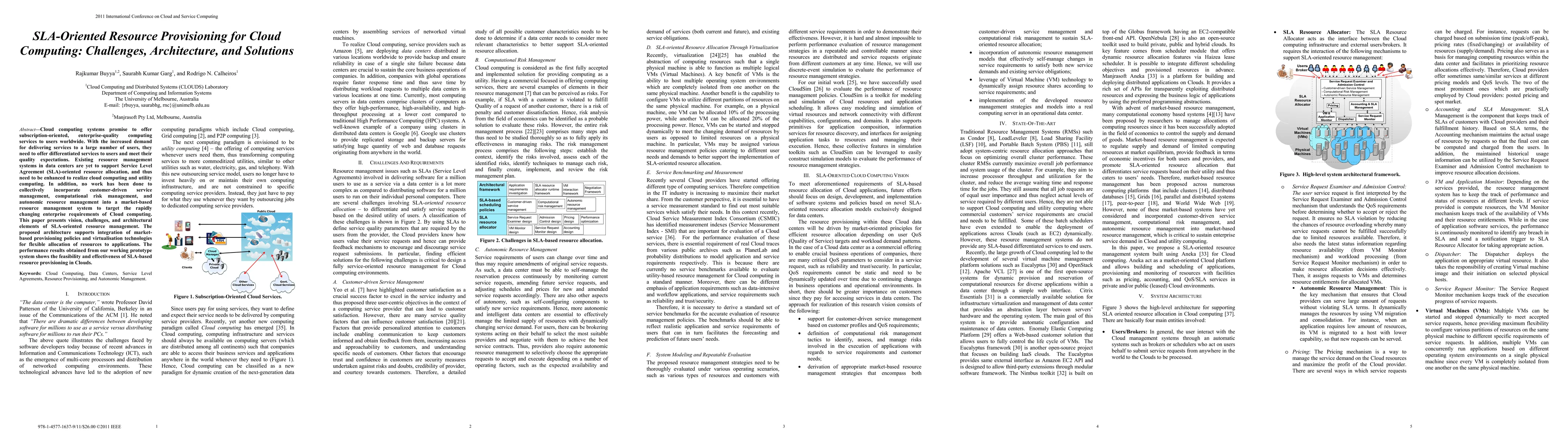 This paper explores the challenges and proposes an architecture for SLA-oriented resource provisioning in cloud computing, aiming to meet enterprise-quality service expectations through flexible resource allocation. The proposed architecture integrates market-based provisioning policies, enhancing existing resource management systems.