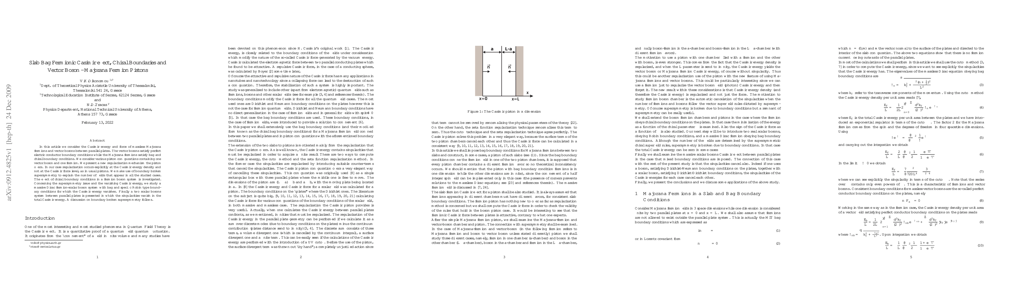 In this article we consider the Casimir energy and force of massless Majorana fermions and vector bosons between parallel plates. The vector bosons satisfy perfect electric conductor boundary conditions while the Majorana fermions satisfy bag and chiral boundary conditions. We consider various piston configurations containing one vector boson and one fermion. We present a new regularization mechanism the piston offers. In our case regularization occurs explicitly at the Casimir energy density and not at the Casimir force level, as in usual pistons. We make use of boundary broken supersymmetry to explain the number of fields that appear in all the studied cases. The effect of chiral boundary conditions in a fermion boson system is investigated. Concerning the supersymmetry issue and the vanishing Casimir energy, we study a massive Dirac fermion-scalar boson system with bag and specific Robin type boundary conditions for which the Casimir energy vanishes. Finally a two scalar bosons system between parallel plates is presented in which the singularities vanish in the total Casimir energy. A discussion on boundary broken supersymmetry follows.