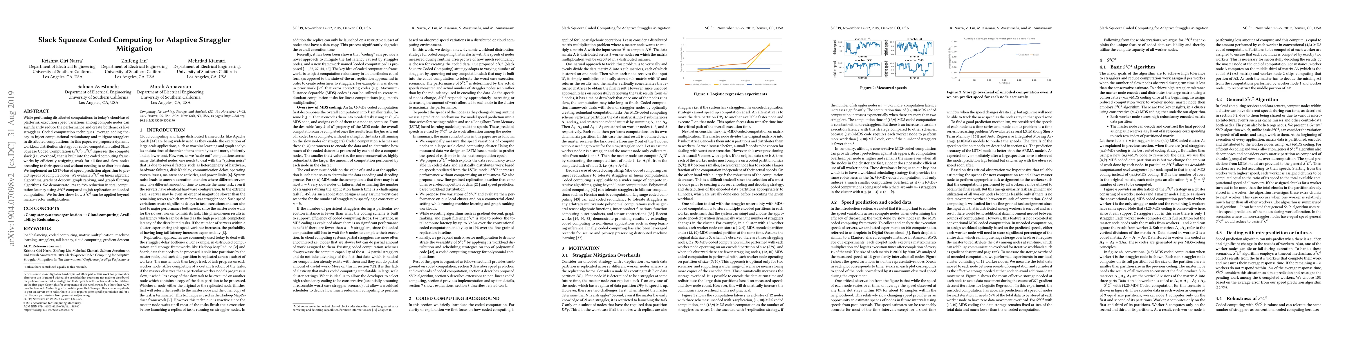 Researchers propose Slack Squeeze Coded Computation (S2C2), a dynamic workload distribution strategy that reduces computation latency in distributed computing by 19-39% compared to traditional methods.