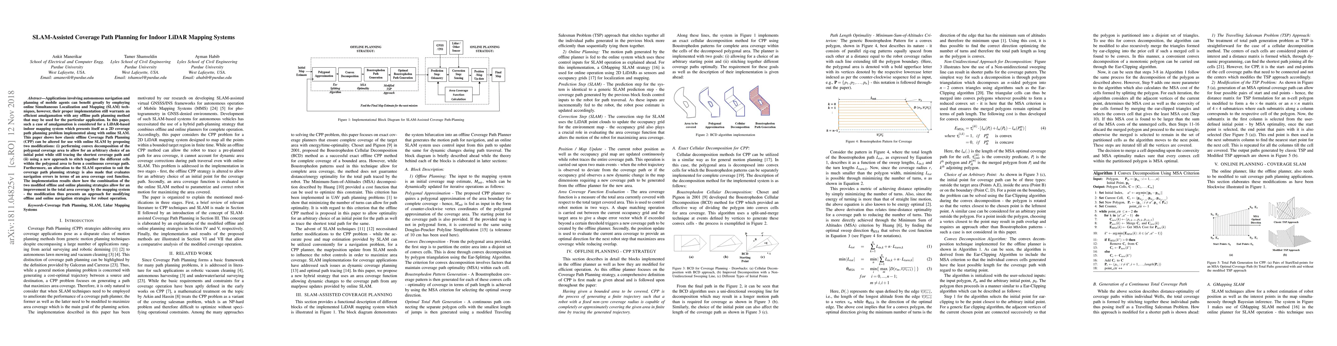 This paper proposes modifications to offline Coverage Path Planning (CPP) to integrate with online SLAM for LiDAR-based indoor mapping systems, enhancing area coverage. The approach includes convex decomposition and a new stitching method for continuous paths, along with a SLAM adaptation using an area coverage cost function.