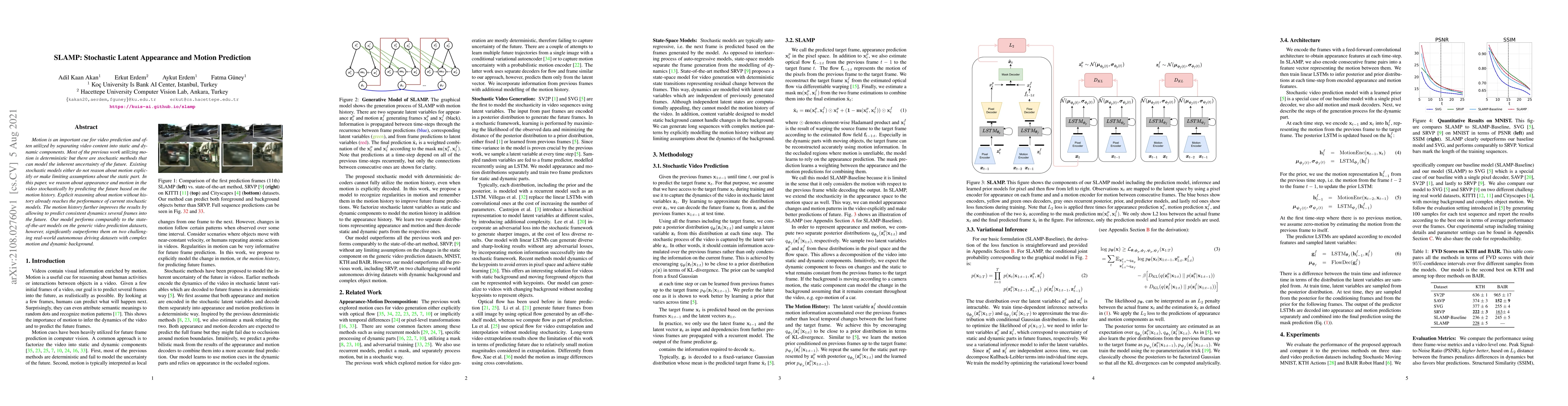 This paper introduces SLAMP, a stochastic model for latent appearance and motion prediction in video, leveraging motion history to improve future frame predictions. It outperforms state-of-the-art models on generic datasets and excels particularly on complex autonomous driving datasets.