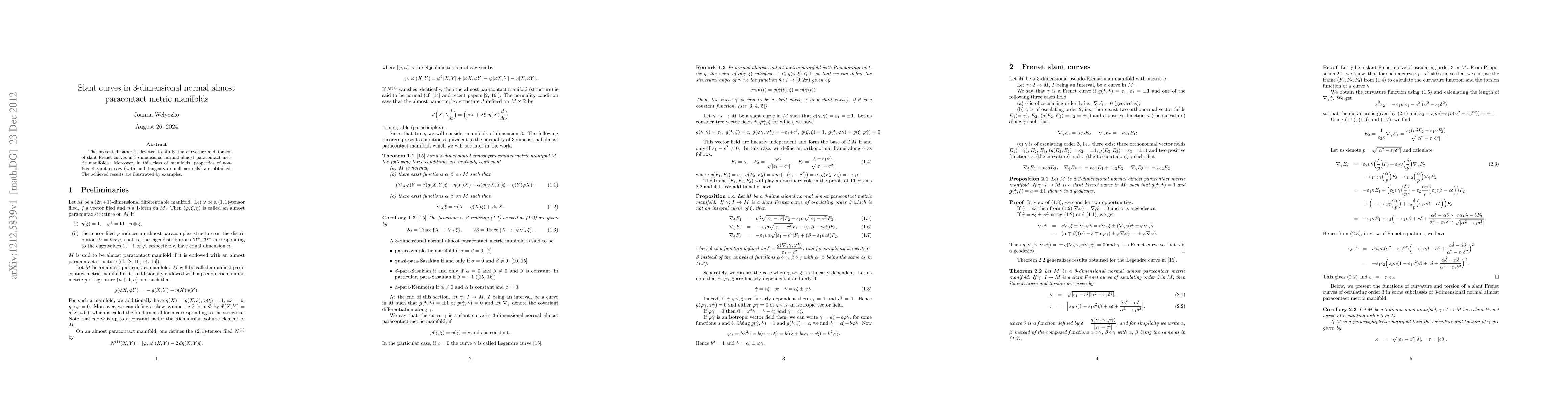 This paper investigates the curvature and torsion of slant Frenet curves in 3-dimensional normal almost paracontact metric manifolds, while also exploring properties of non-Frenet slant curves, including those with null tangents or normals, with illustrative examples provided.