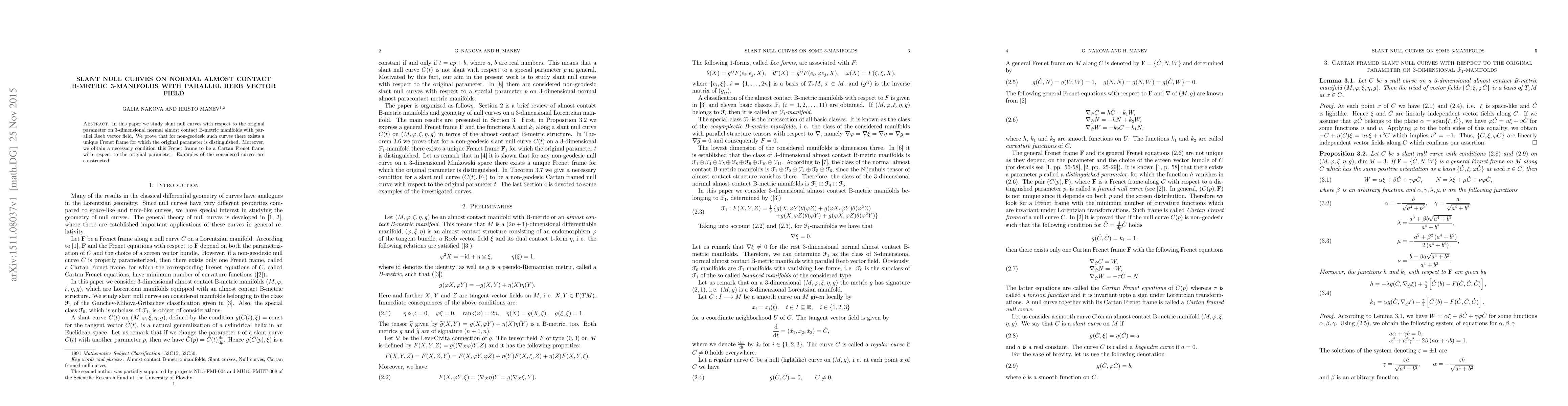 This paper investigates slant null curves on 3-dimensional normal almost contact B-metric manifolds with a parallel Reeb vector field, proving that non-geodesic curves have a unique distinguished Frenet frame and providing a necessary condition for it to be a Cartan Frenet frame. Examples of these curves are also presented.