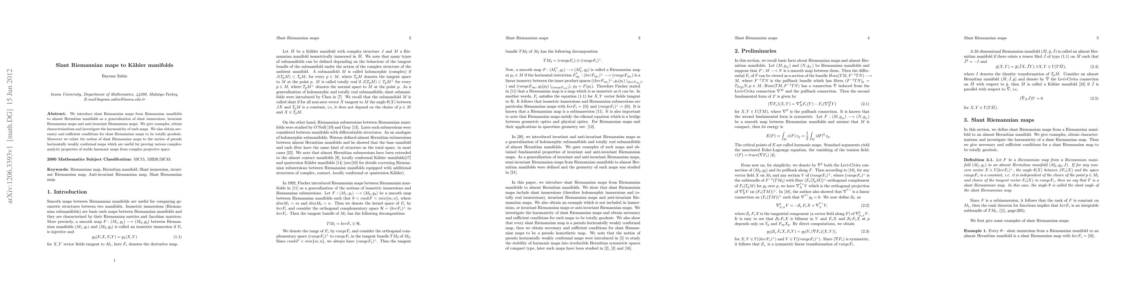 This paper generalizes slant immersions to slant Riemannian maps between Riemannian and almost Hermitian manifolds, providing characterizations, examples, and conditions for harmonicity and total geodesicity. It also connects slant maps to pseudo horizontally weakly conformal maps, relevant for complex-analytic properties of harmonic maps.