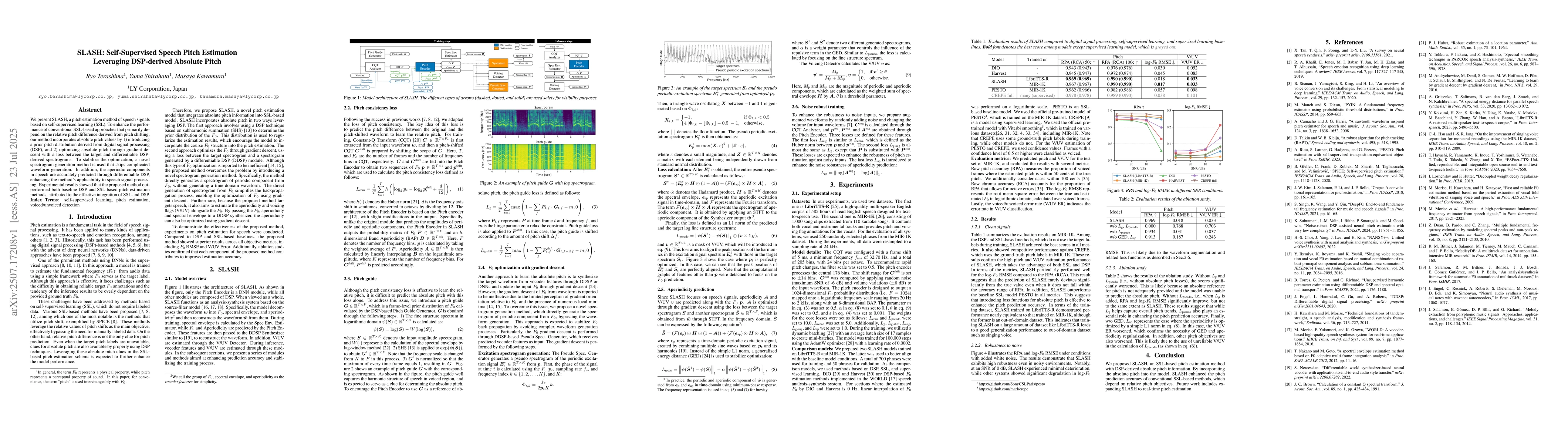 We present SLASH, a pitch estimation method of speech signals based on self-supervised learning (SSL). To enhance the performance of conventional SSL-based approaches that primarily depend on the relative pitch difference derived from pitch shifting, our method incorporates absolute pitch values by 1) introducing a prior pitch distribution derived from digital signal processing (DSP), and 2) optimizing absolute pitch through gradient descent with a loss between the target and differentiable DSP-derived spectrograms. To stabilize the optimization, a novel spectrogram generation method is used that skips complicated waveform generation. In addition, the aperiodic components in speech are accurately predicted through differentiable DSP, enhancing the method's applicability to speech signal processing. Experimental results showed that the proposed method outperformed both baseline DSP and SSL-based pitch estimation methods, attributed to the effective integration of SSL and DSP.
