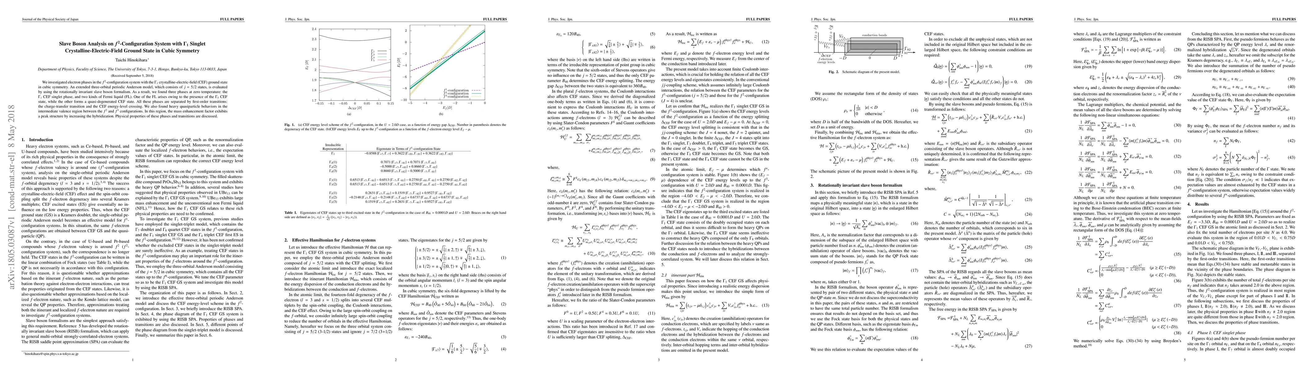 We investigated electron phases in the $f^2$-configuration system with the $\Gamma_1$ crystalline-electric-field (CEF) ground state in cubic symmetry. An extended three-orbital periodic Anderson model, which consists of $j=5/2$ states, is evaluated by using the rotationally invariant slave boson formalism. As a result, we found three phases at zero temperature: the $\Gamma_1$ CEF singlet phase, and two kinds of Fermi liquid (FL). One of the FL arises owing to the presence of the $\Gamma_5$ CEF state, while the other forms a quasi-degenerated CEF state. All these phases are separated by first-order transitions: the charge-transfer transition and the CEF energy-level crossing. We also found heavy quasiparticle behaviors in the intermediate valence region between the $f^2$ and $f^3$ configurations. In this region, the mass enhancement factor exhibits a peak structure by increasing the hybridization. Physical properties of these phases and transitions are discussed.