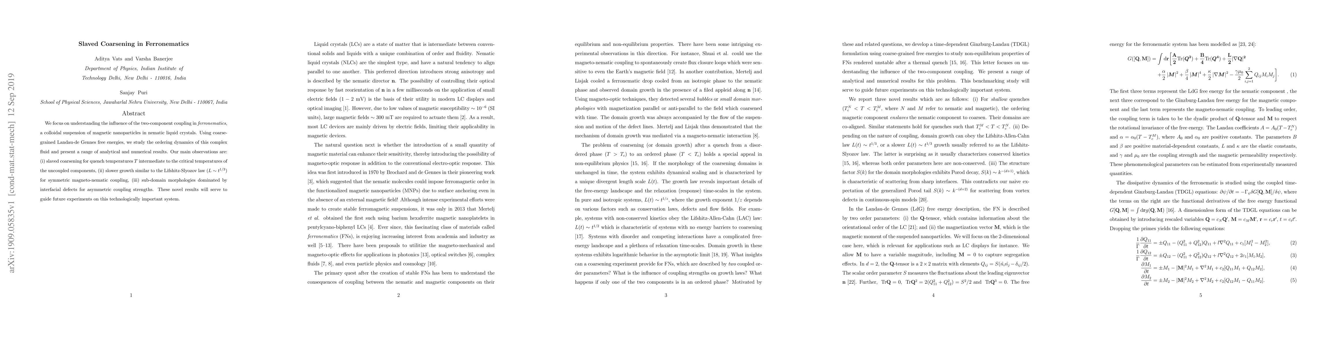 This research explores the impact of magnetic nanoparticle-liquid crystal interaction in ferronematics, using Landau-de Gennes models. Key findings include slaved coarsening at intermediate temperatures, slower growth akin to the Lifshitz-Slyozov law under symmetric coupling, and defect-dominated sub-domain morphologies with asymmetric coupling. The study provides insights for future experimental work in this technologically significant field.