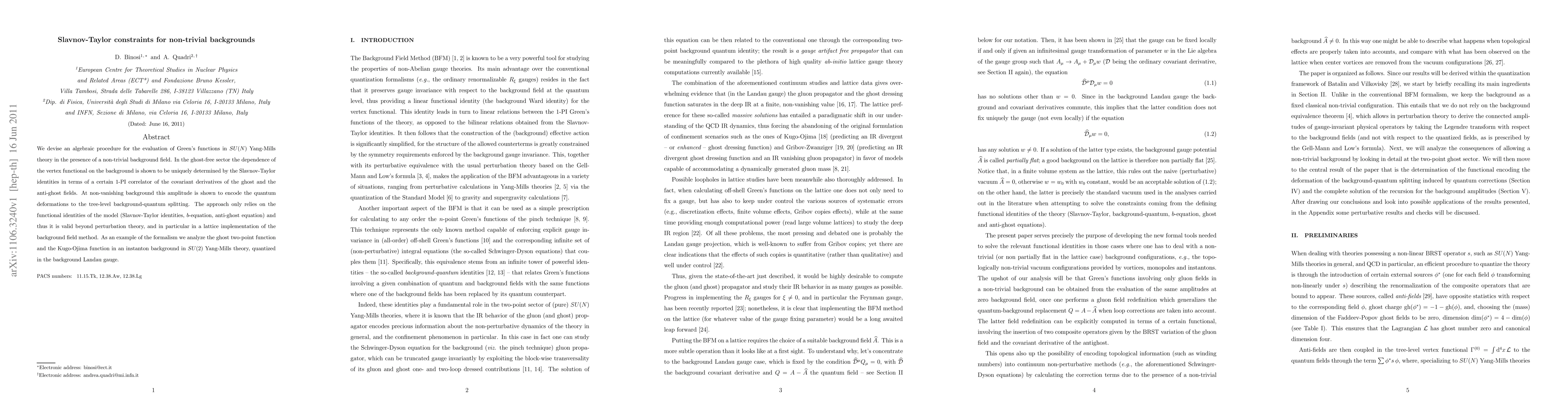 Researchers developed an algebraic procedure to evaluate Green's functions in SU(N) Yang-Mills theory with non-trivial backgrounds, showing that the vertex functional depends uniquely on Slavnov-Taylor identities and a specific correlator of ghost fields.