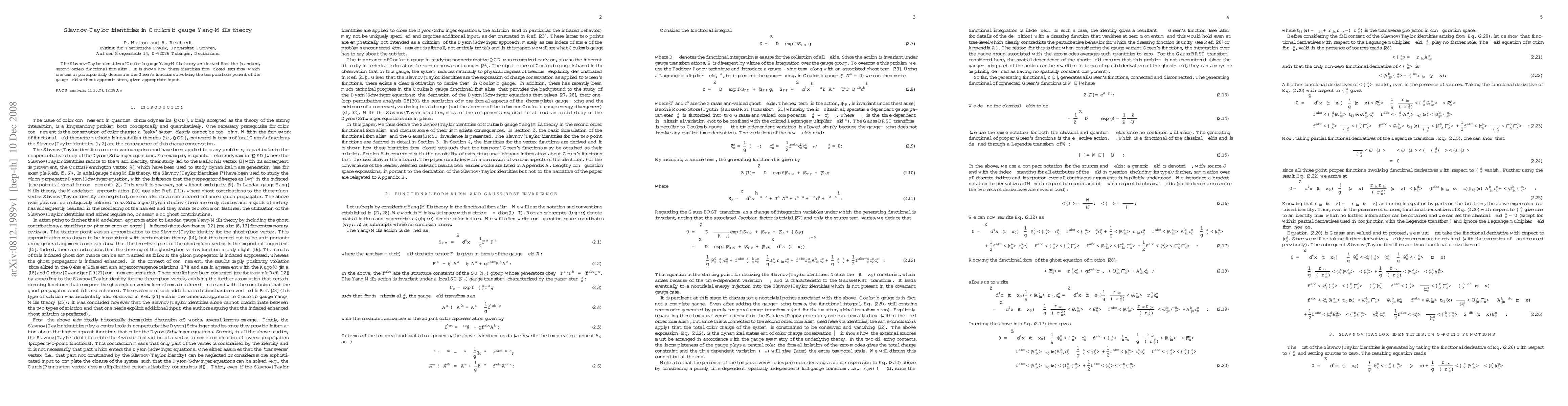 Summary: The paper derives Slavnov-Taylor identities for Coulomb gauge Yang-Mills theory using functional formalism, demonstrating they allow for the exact determination of Green's functions related to the temporal gauge field component.