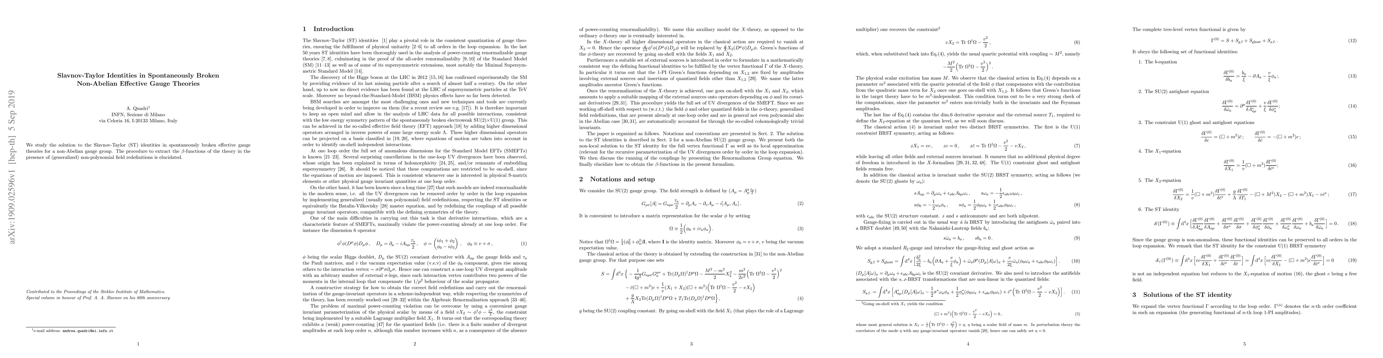 This paper investigates the Slavnov-Taylor identities within spontaneously broken non-Abelian effective gauge theories, focusing on extracting $\beta$-functions under generalized non-polynomial field redefinitions. The approach elucidates the intricate dynamics of the theory.