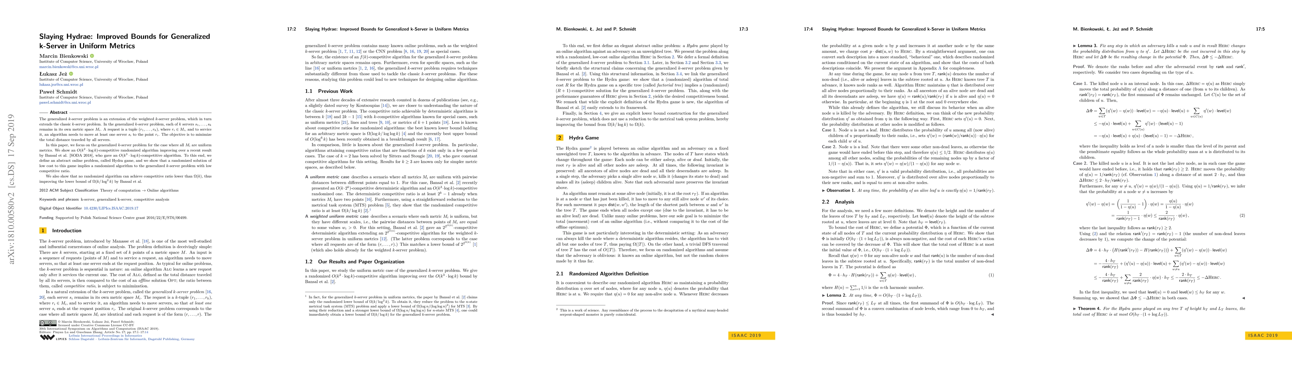 This paper presents an improved $O(k^2 \cdot \log k)$-competitive randomized algorithm for the generalized $k$-server problem in uniform metrics, surpassing the previous $O(k^3 \cdot \log k)$-competitive algorithm. The authors introduce the Hydra game to demonstrate the effectiveness of their approach and establish a lower bound of $\Omega(k)$ for any randomized algorithm.