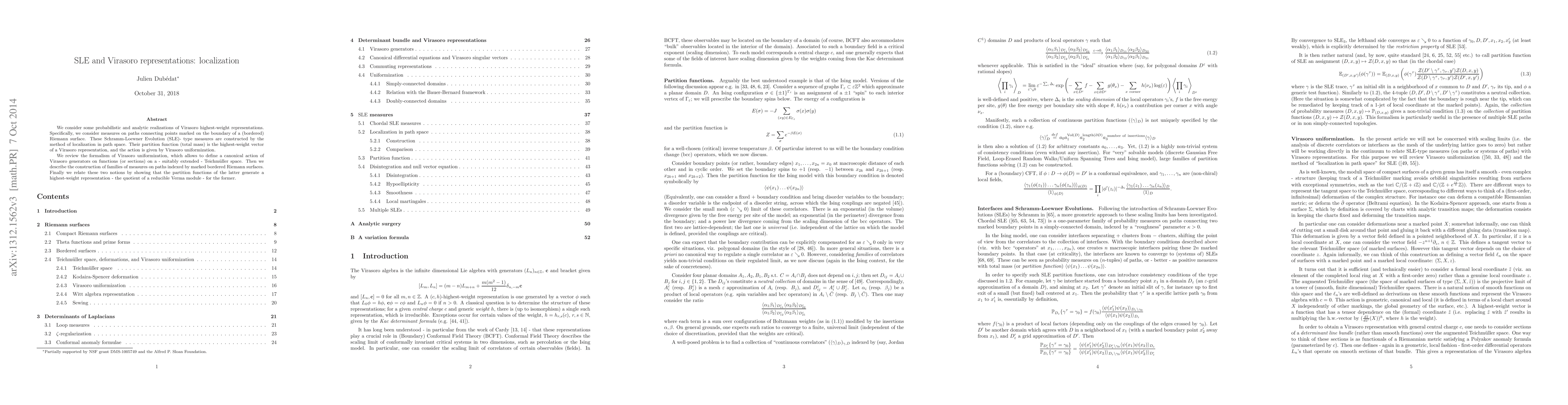 This paper constructs SLE-type measures on paths via Virasoro representations' localization method, linking these probabilistic measures to Virasoro uniformization. It demonstrates that the partition functions of these measures generate a highest-weight representation for the Virasoro algebra.