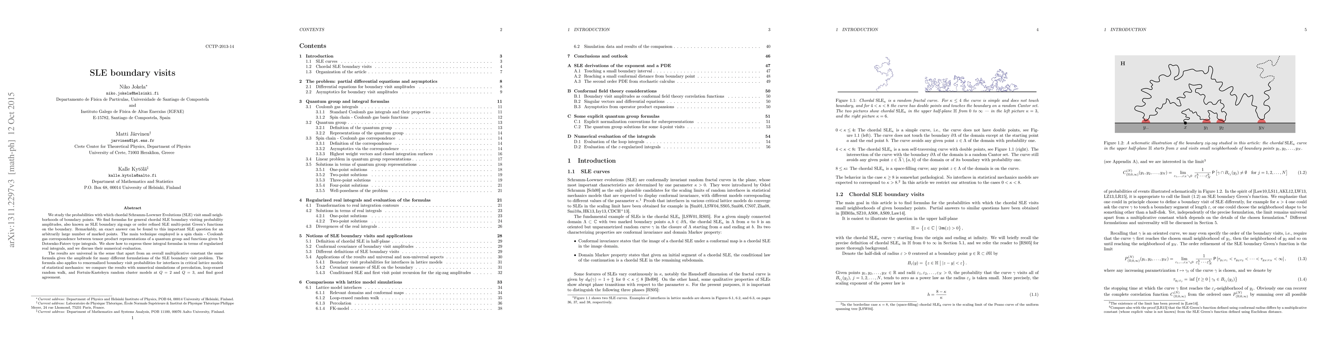 This research develops formulas for the probabilities of chordal Schramm-Loewner Evolutions (SLE) visiting neighborhoods around boundary points, employing a spin chain-Coulomb gas correspondence. The universal formula derived aligns well with numerical simulations of percolation and other lattice models, confirming its applicability.