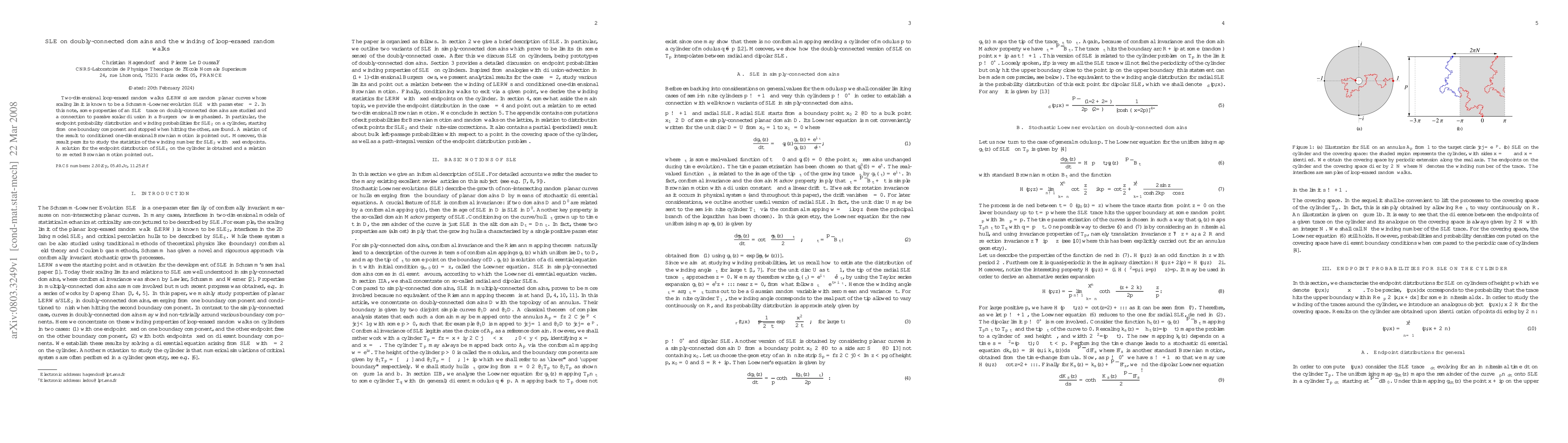 Two-dimensional loop-erased random walks (LERWs) are random planar curves whose scaling limit is known to be a Schramm-Loewner evolution SLE_k with parameter k = 2. In this note, some properties of an SLE_k trace on doubly-connected domains are studied and a connection to passive scalar diffusion in a Burgers flow is emphasised. In particular, the endpoint probability distribution and winding probabilities for SLE_2 on a cylinder, starting from one boundary component and stopped when hitting the other, are found. A relation of the result to conditioned one-dimensional Brownian motion is pointed out. Moreover, this result permits to study the statistics of the winding number for SLE_2 with fixed endpoints. A solution for the endpoint distribution of SLE_4 on the cylinder is obtained and a relation to reflected Brownian motion pointed out.