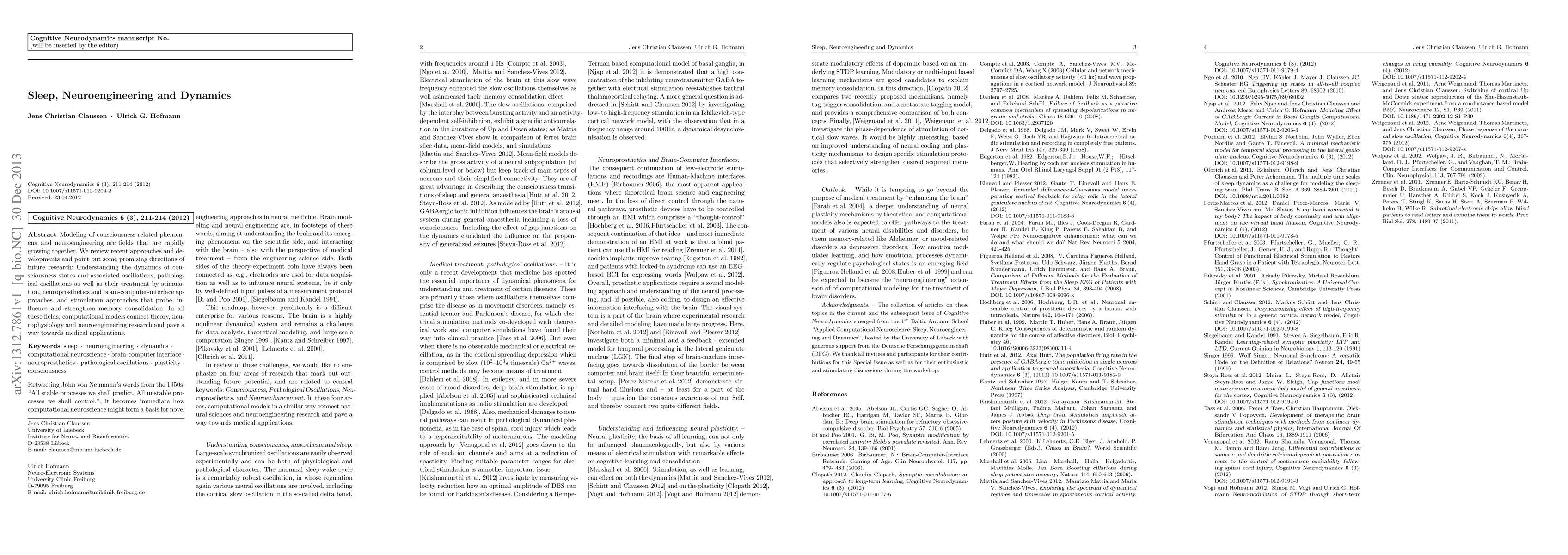 Modeling of consciousness-related phenomena and neuroengineering are fields that are rapidly growing together. We review recent approaches and developments and point out some promising directions of future research: Understanding the dynamics of consciousness states and associated oscillations, pathological oscillations as well as their treatment by stimulation, neuroprosthetics and brain-computer-interface approaches, and stimulation approaches that probe, influence and strengthen memory consolidation. In all these fields, computational models connect theory, neurophysiology and neuroengineering research and pave a way towards medical applications.