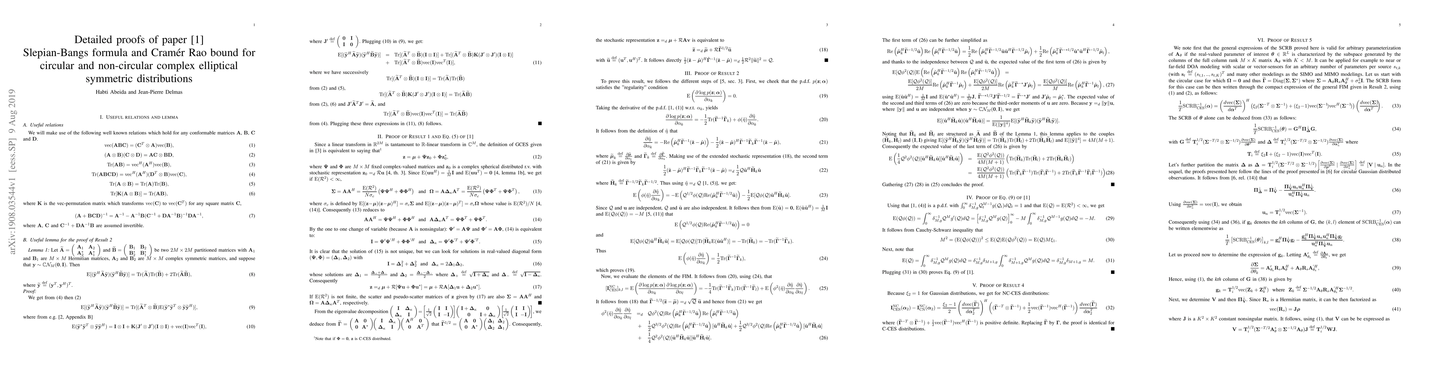 This paper extends the Slepian-Bangs formula to non-circular complex elliptical symmetric distributions, deriving it from a new stochastic representation theorem. It also discusses the Cramer Rao bound, showing that Gaussian distributions do not always yield the largest stochastic Cramer Rao bound, contrary to common belief.