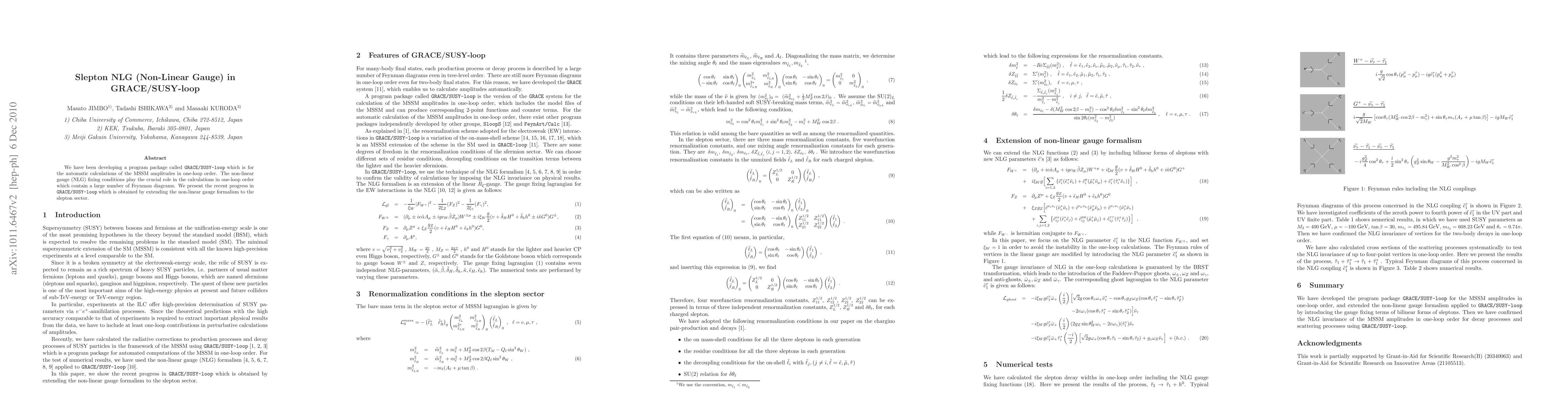 We have been developing a program package called GRACE/SUSY-loop which is for the automatic calculations of the MSSM amplitudes in one-loop order. The non-linear gauge (NLG) fixing conditions play the crucial role in the calculations in one-loop order which contain a large number of Feynman diagrams. We present the recent progress in GRACE/SUSY-loop which is obtained by extending the non-linear gauge formalism to the slepton sector.
