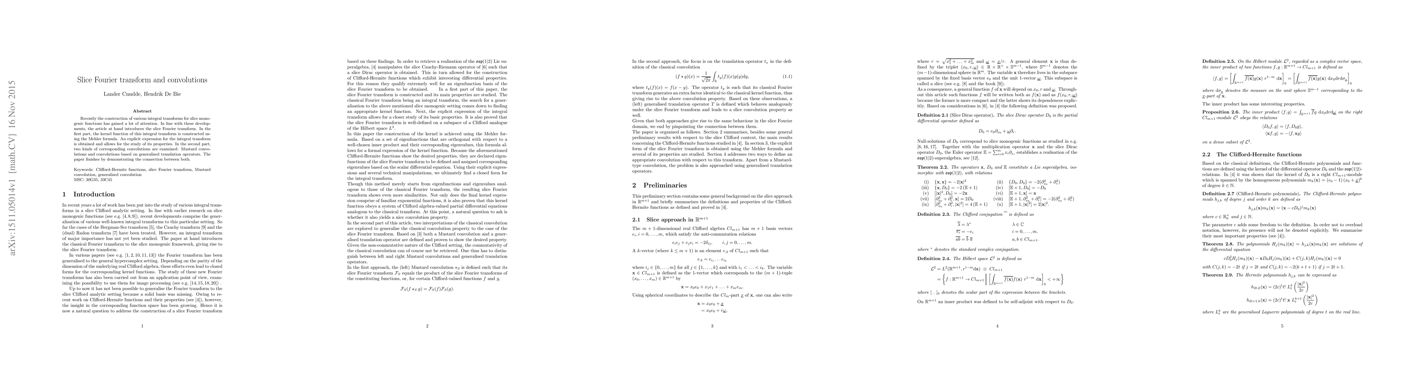This paper introduces the slice Fourier transform for slice monogenic functions, constructing its kernel using the Mehler formula and examining Mustard convolutions and convolutions based on generalized translation operators, ultimately showing their connection.