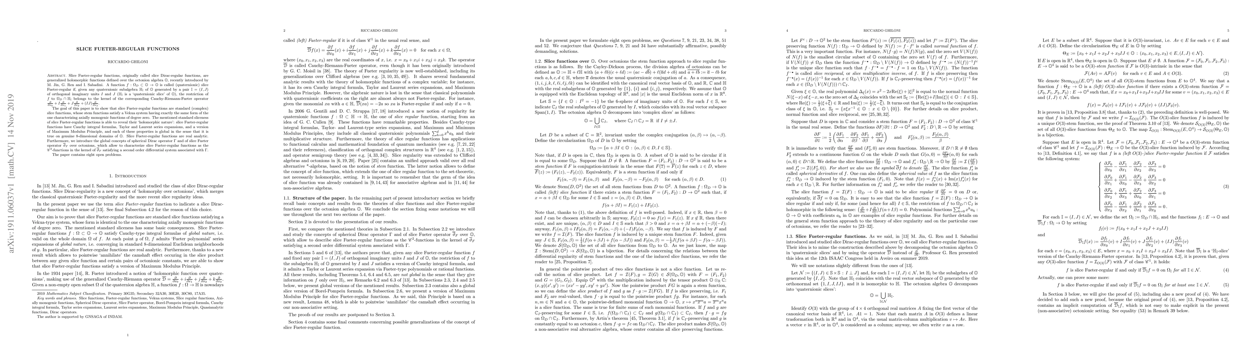The paper introduces a framework for analyzing slice Fueter-regular functions, demonstrating their properties and connections to complex slice functions, which extends existing theories on monogenic functions.