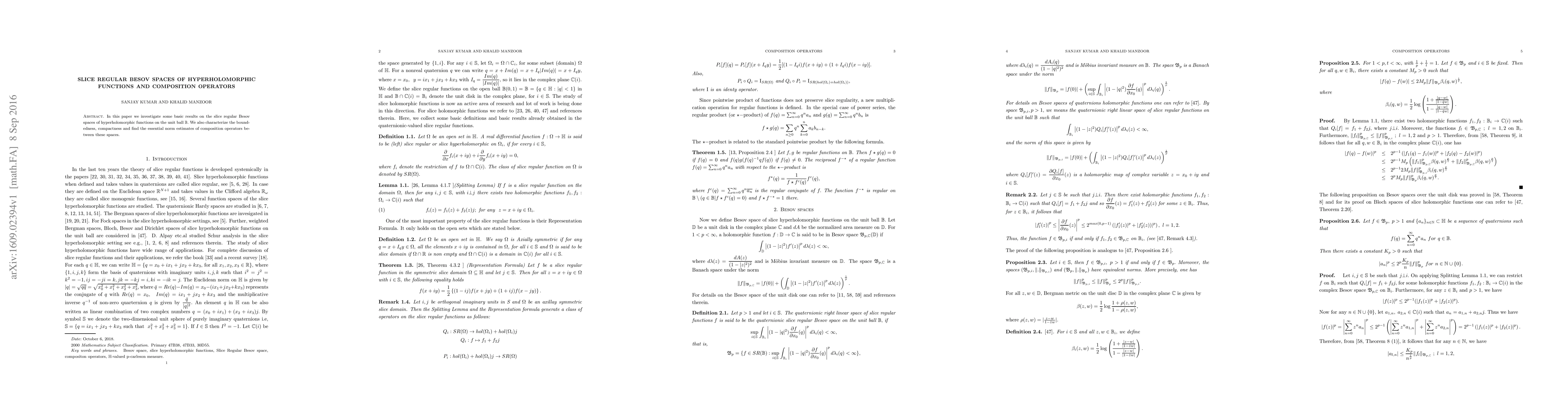 This paper explores slice regular Besov spaces for hyperholomorphic functions within the unit ball $\mathbb{B}$, providing insights into their boundedness, compactness, and composition operator norms. Essential norm estimates for these composition operators are also determined.