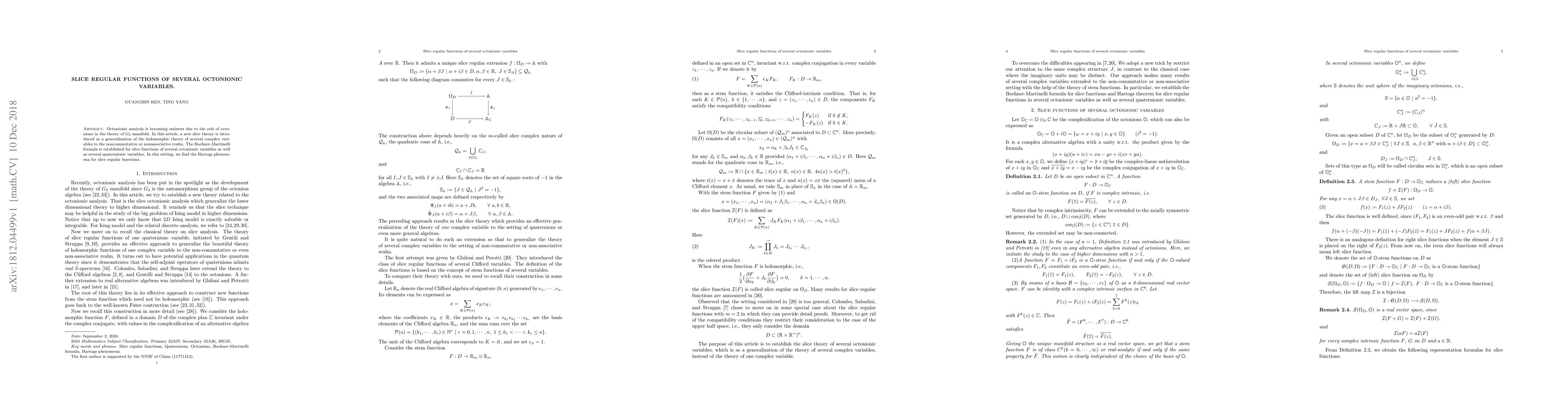 This paper introduces a new slice theory for octonionic variables, generalizing holomorphic functions to a noncommutative realm, establishes the Bochner-Martinelli formula for slice functions, and finds the Hartogs phenomena for slice regular functions.