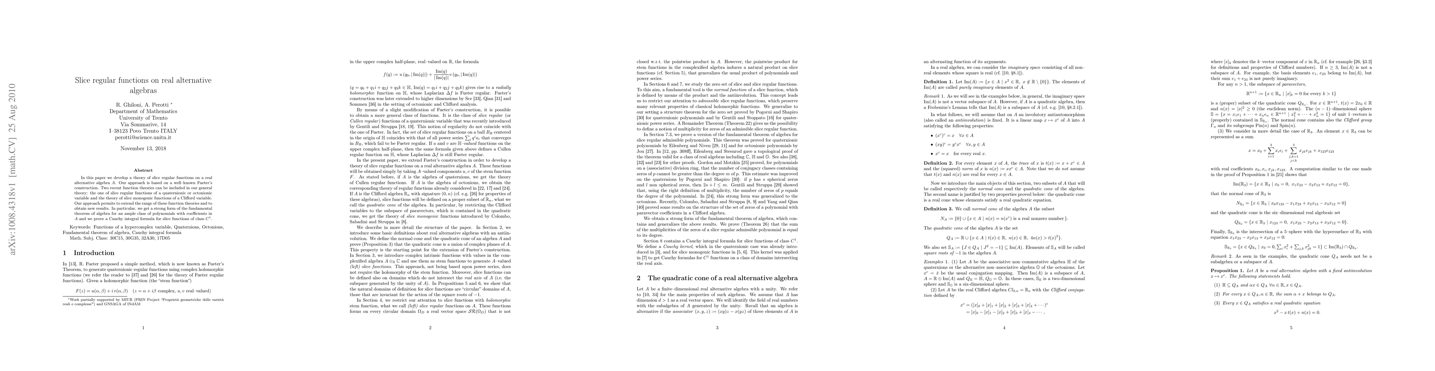 This paper introduces a theory of slice regular functions on real alternative algebras using Fueter's construction, encompassing quaternionic, octonionic, and Clifford variables. It extends existing function theories and provides a strong form of the fundamental theorem of algebra along with a Cauchy integral formula for $C^1$ slice functions.