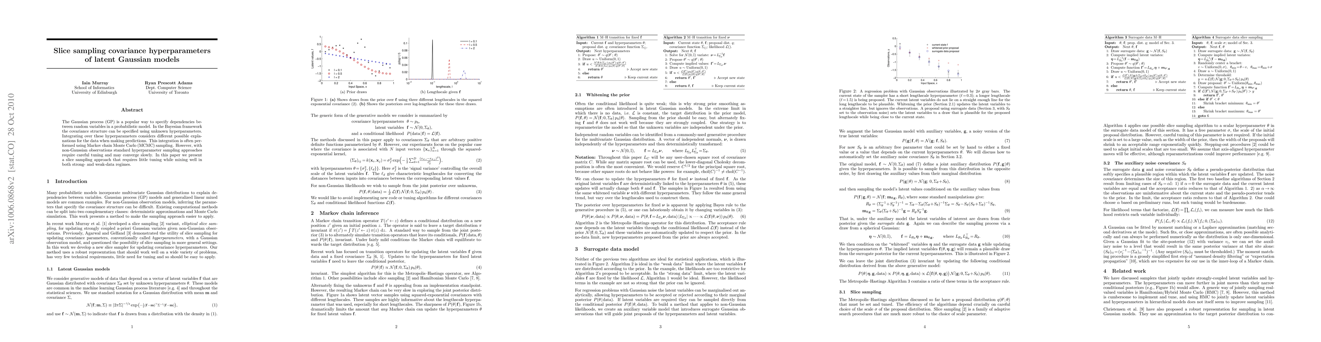 This paper presents a slice sampling method for efficiently integrating over covariance hyperparameters in Gaussian process models, offering improved performance and reduced tuning compared to traditional MCMC methods, especially in non-Gaussian observation scenarios.