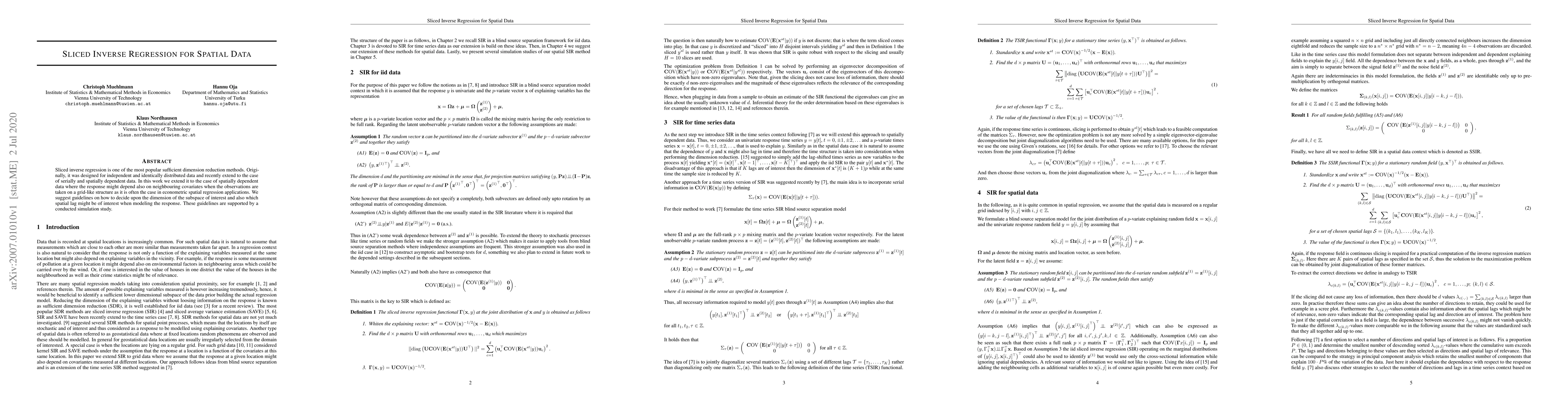 This paper extends Sliced Inverse Regression to spatially dependent data, providing guidelines for selecting dimensions and spatial lags in grid-like structures, supported by a simulation study.