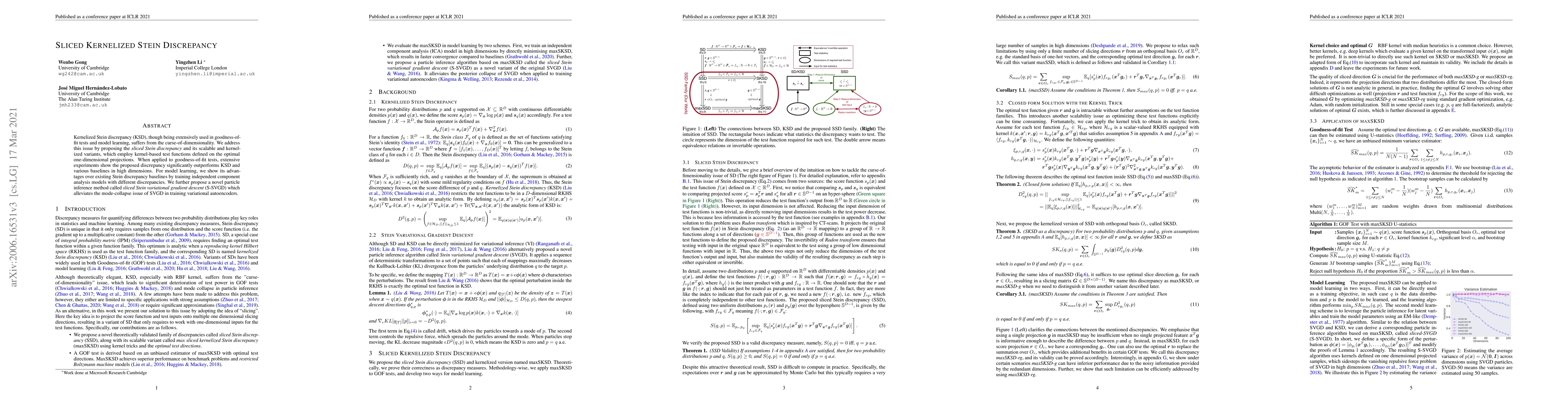 The paper proposes sliced kernelized Stein discrepancy (KSD) to tackle the curse-of-dimensionality in KSD, achieving better performance in high-dimensional goodness-of-fit tests and model learning, and introduces sliced Stein variational gradient descent (S-SVGD) to improve variational autoencoder training.