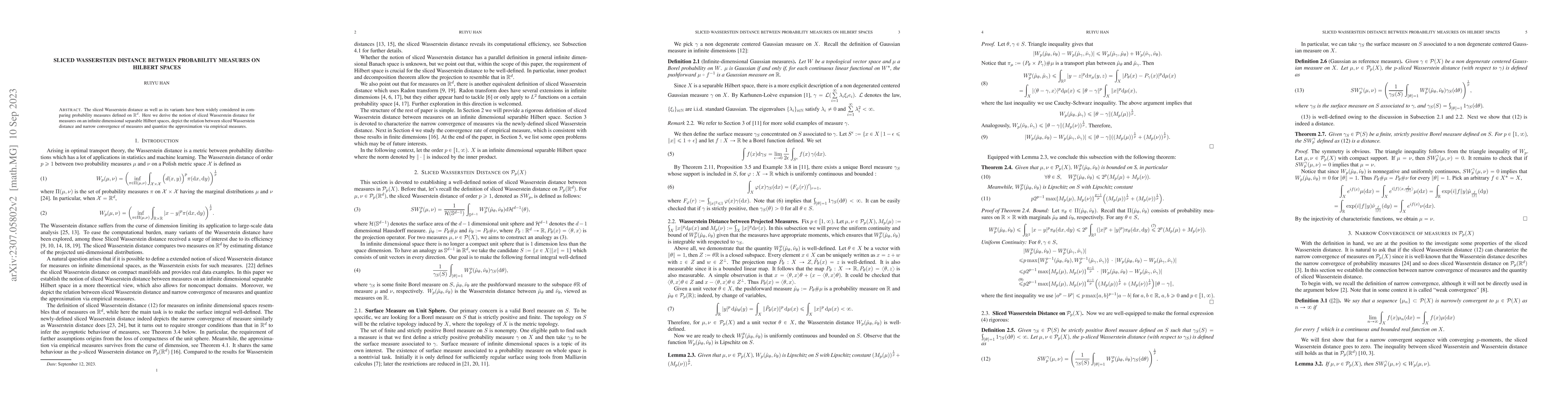 This paper introduces the concept of sliced Wasserstein distance for probability measures on infinite-dimensional separable Hilbert spaces, and explores its relationship with narrow convergence and empirical measure approximations.