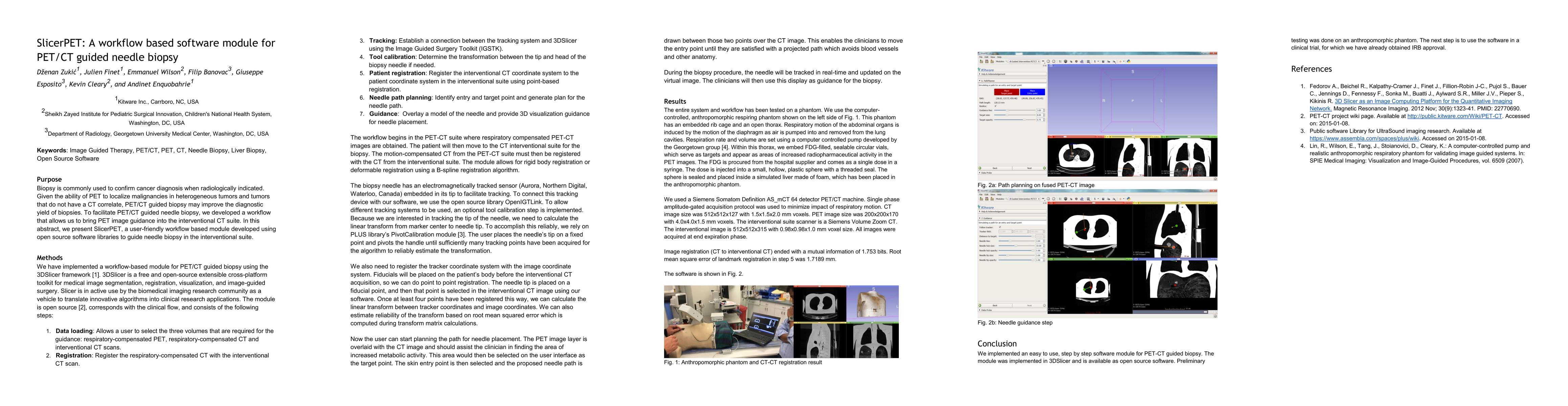 SlicerPET is a user-friendly software module developed for PET/CT guided needle biopsy, enhancing diagnostic accuracy in cancer diagnosis by integrating PET image guidance into the interventional CT suite. It utilizes open-source libraries to facilitate precise localization of malignancies.