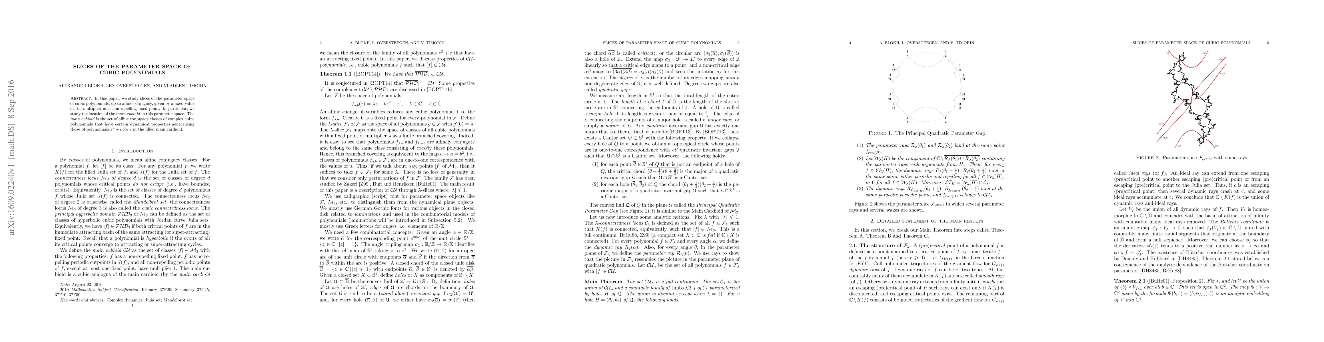 The paper employs a detailed analysis of slices of the parameter space of cubic polynomials, focusing on affine conjugacy classes with a fixed multiplier at a non-repelling fixed point.