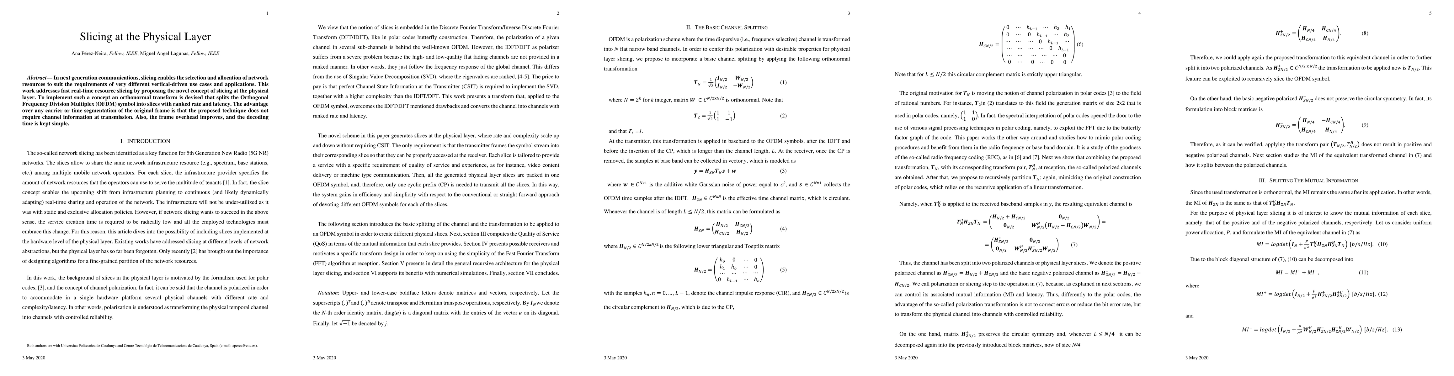 In next generation communications, slicing enables the selection and allocation of network resources to suit the requirements of very different vertical-driven use cases and applications. This work addresses fast real-time resource slicing by proposing the novel concept of slicing at the physical layer. To implement such a concept an orthonormal transform is devised that splits the Orthogonal Frequency Division Multiplex (OFDM) symbol into slices with ranked rate and latency. The advantage over any carrier or time segmentation of the original frame is that the proposed technique does not require channel information at transmission. Also, the frame overhead improves, and the decoding time is kept simple.