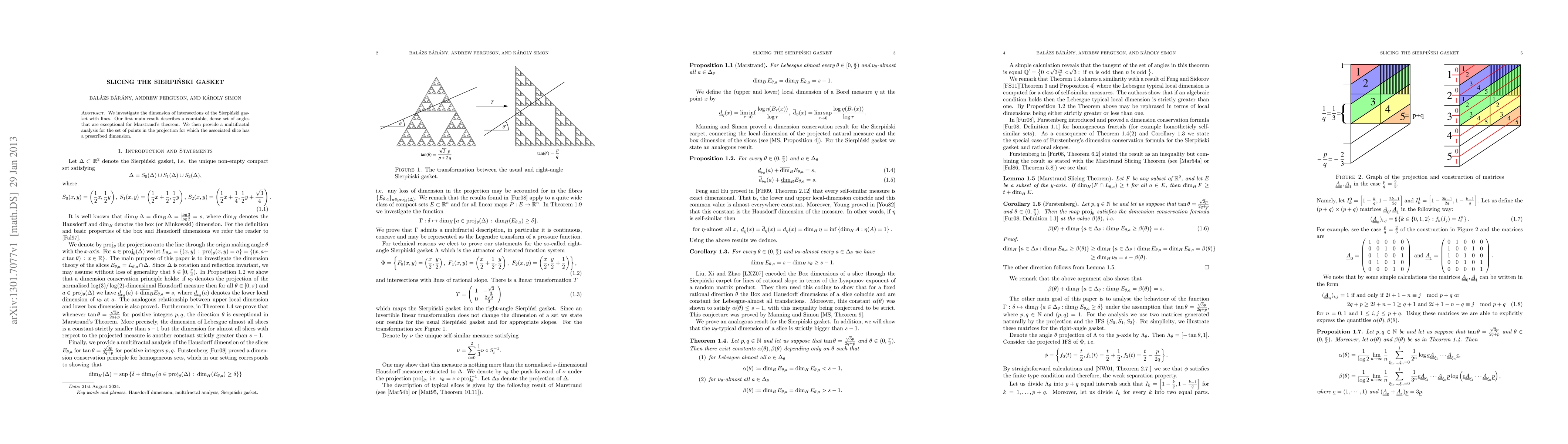 The research presents a unique multifractal perspective on the dimensions of slices through the Sierpiński gasket, identifying specific angles that deviate from typical behavior described by Marstrand's theorem.