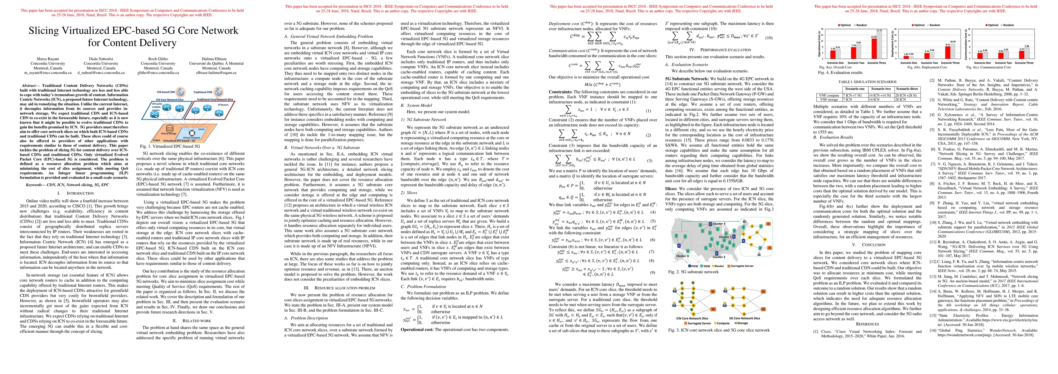 This paper explores slicing virtualized 5G core networks to support both traditional and Information Centric Network (ICN)-based Content Delivery Networks (CDNs). It proposes an Integer linear programming (ILP) model to minimize slice assignment costs while meeting Quality of Service (QoS) requirements, evaluated in a small-scale scenario.