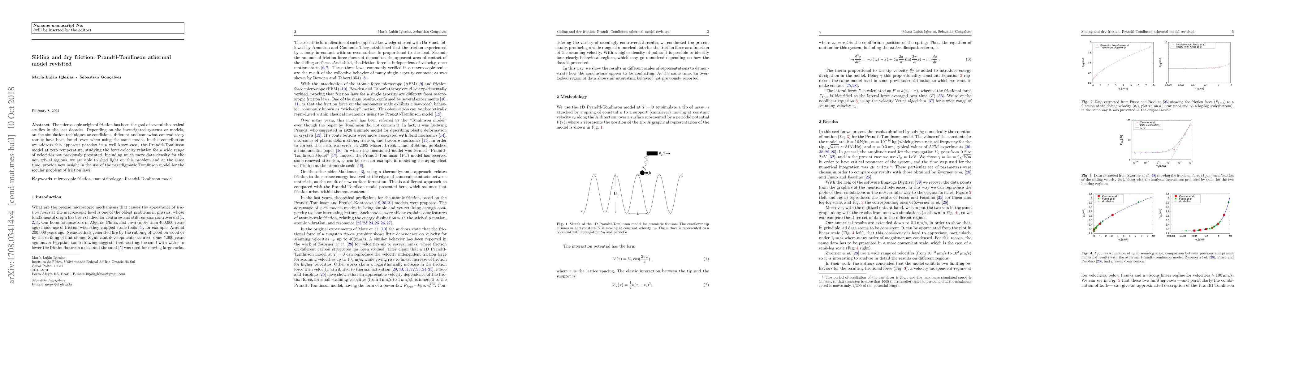 This paper revisits the Prandtl-Tomlinson athermal model to explore the microscopic origin of friction, analyzing the force-velocity relation over a broad velocity range to resolve previous contradictory results and provide new insights into the model's application for understanding friction laws.