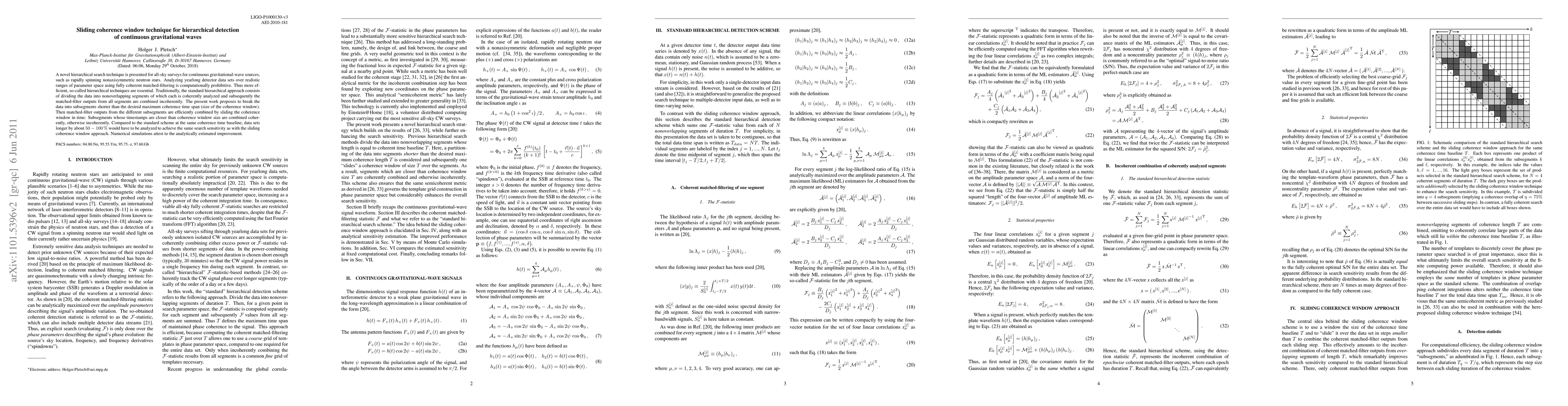 A novel hierarchical search technique is presented for all-sky surveys for continuous gravitational-wave sources, such as rapidly spinning nonaxisymmetric neutron stars. Analyzing yearlong detector data sets over realistic ranges of parameter space using fully coherent matched-filtering is computationally prohibitive. Thus more efficient, so-called hierarchical techniques are essential. Traditionally, the standard hierarchical approach consists of dividing the data into nonoverlapping segments of which each is coherently analyzed and subsequently the matched-filter outputs from all segments are combined incoherently. The present work proposes to break the data into subsegments shorter than the desired maximum coherence time span (size of the coherence window). Then matched-filter outputs from the different subsegments are efficiently combined by sliding the coherence window in time: Subsegments whose timestamps are closer than coherence window size are combined coherently, otherwise incoherently. Compared to the standard scheme at the same coherence time baseline, data sets longer by about 50-100% would have to be analyzed to achieve the same search sensitivity as with the sliding coherence window approach. Numerical simulations attest to the analytically estimated improvement.