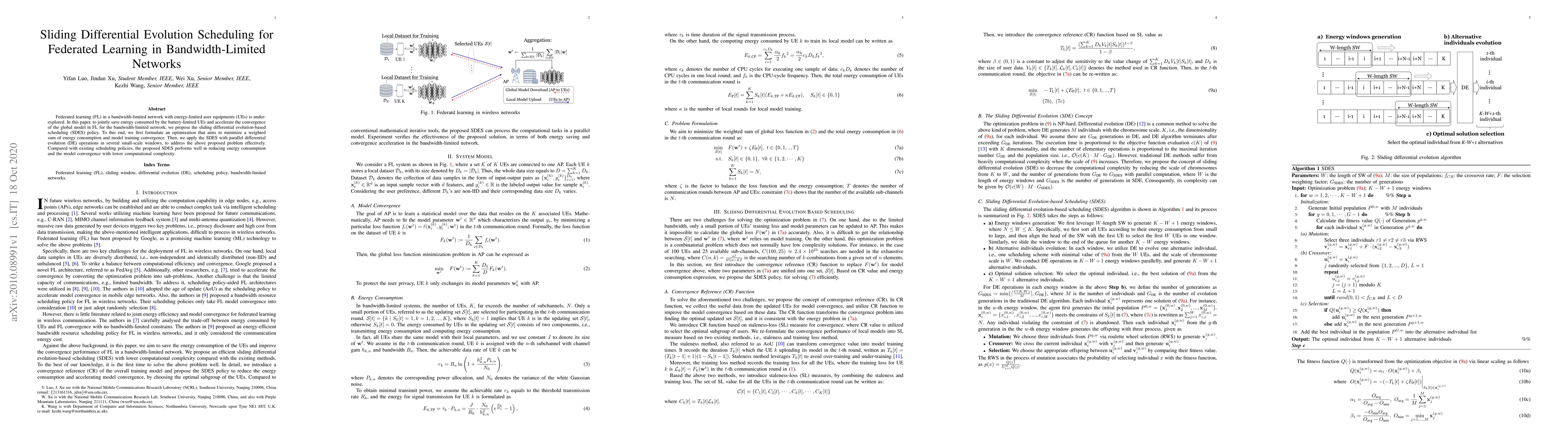 This paper proposes a sliding differential evolution-based scheduling (SDES) policy to optimize federated learning in bandwidth-limited networks by minimizing energy consumption and accelerating global model convergence. The SDES method effectively reduces energy use and computational complexity compared to existing scheduling policies.