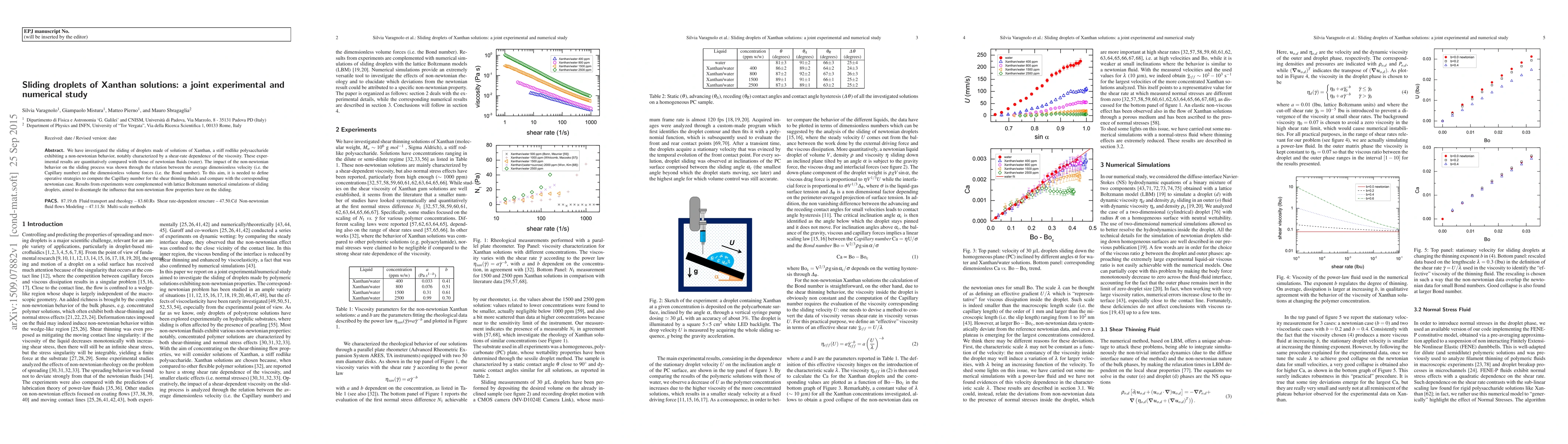 This study investigates the sliding behavior of Xanthan solution droplets, a non-Newtonian fluid, and compares it to Newtonian fluids like water. The research combines experimental observations with lattice Boltzmann simulations to analyze the effects of non-Newtonian viscosity on droplet sliding dynamics.