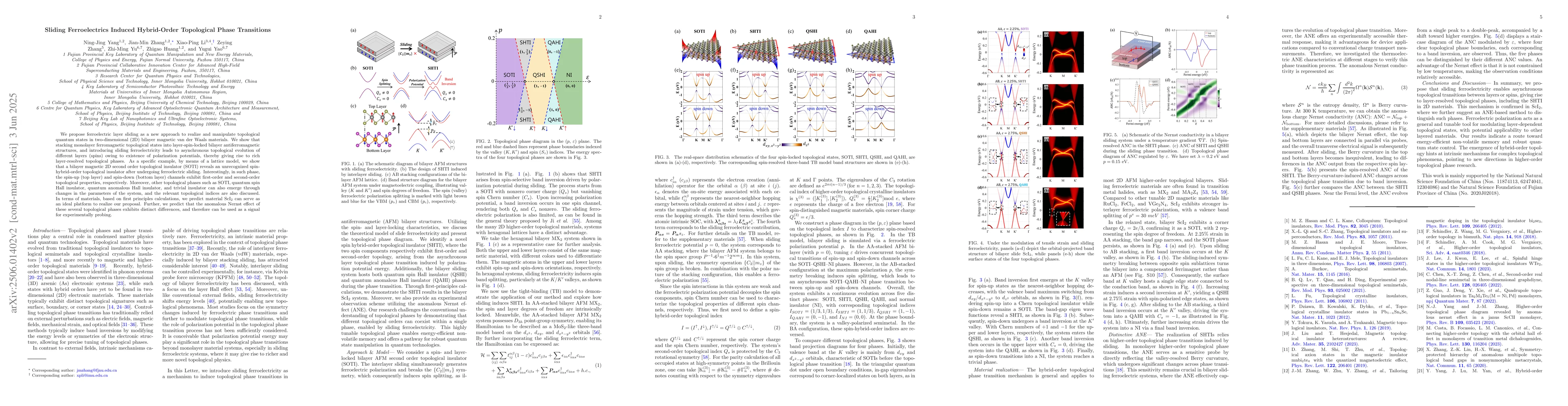 This work is novel as it introduces ferroelectric sliding to manipulate topological phases in 2D bilayer magnetic materials, revealing unique spin-hybrid-order topological insulator properties and distinct anomalous Nernst effects for various topological phases.