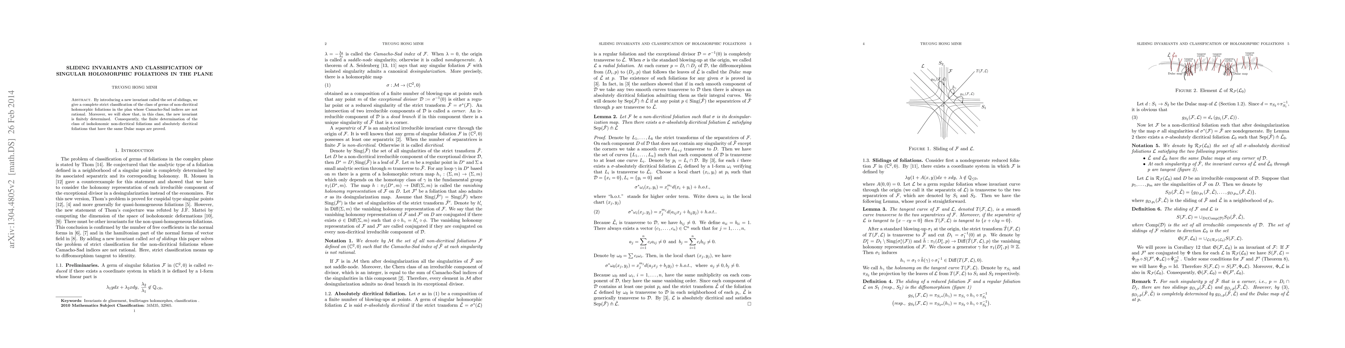The paper introduces a new invariant called the set of slidings to classify non-dicritical holomorphic foliations in the plane with non-rational Camacho-Sad indices, proving finite determination and establishing the classification of isoholonomic and absolutely dicritical foliations sharing Dulac maps.