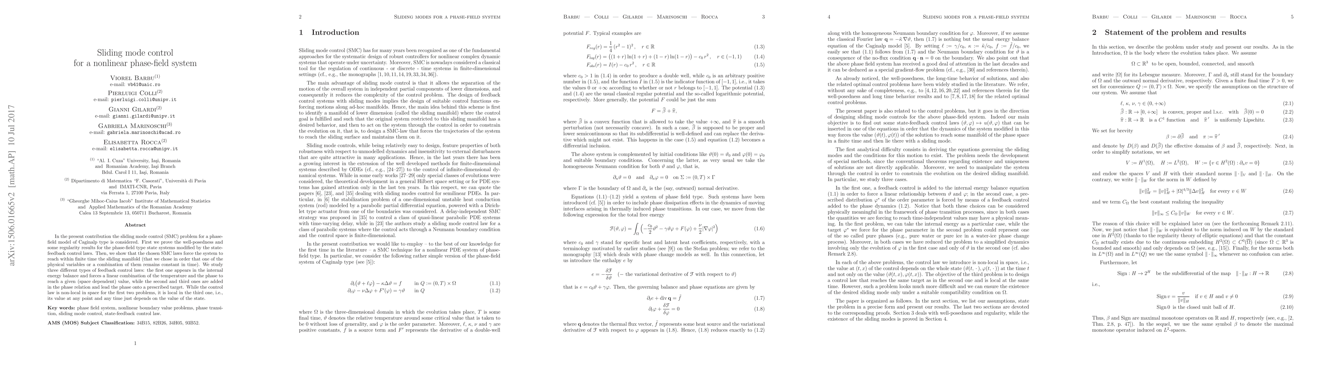 In the present contribution the sliding mode control (SMC) problem for a phase-field model of Caginalp type is considered. First we prove the well-posedness and some regularity results for the phase-field type state systems modified by the state-feedback control laws. Then, we show that the chosen SMC laws force the system to reach within finite time the sliding manifold (that we chose in order that one of the physical variables or a combination of them remains constant in time). We study three different types of feedback control laws: the first one appears in the internal energy balance and forces a linear combination of the temperature and the phase to reach a given (space dependent) value, while the second and third ones are added in the phase relation and lead the phase onto a prescribed target. While the control law is non-local in space for the first two problems, it is local in the third one, i.e., its value at any point and any time just depends on the value of the state.