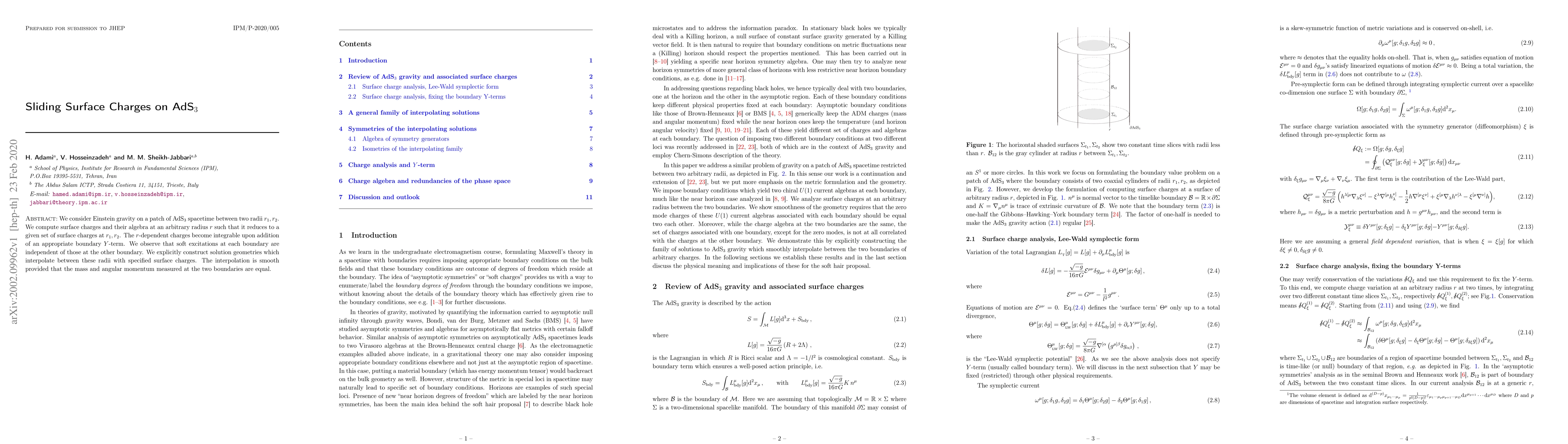 We consider Einstein gravity on a patch of AdS$_3$ spacetime between two radii $r_1, r_2$. We compute surface charges and their algebra at an arbitrary radius $r$ such that it reduces to a given set of surface charges at $r_1, r_2$. The $r$-dependent charges become integrable upon addition of an appropriate boundary $Y$-term. We observe that soft excitations at each boundary are independent of those at the other boundary. We explicitly construct solution geometries which interpolate between these radii with specified surface charges. The interpolation is smooth provided that the mass and angular momentum measured at the two boundaries are equal.