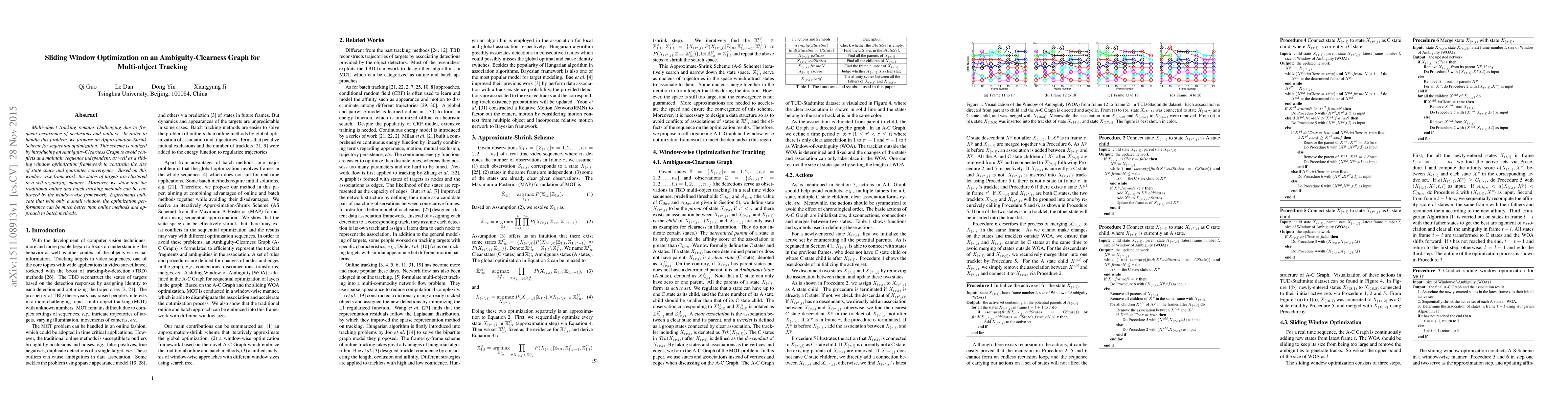 Multi-object tracking remains challenging due to frequent occurrence of occlusions and outliers. In order to handle this problem, we propose an Approximation-Shrink Scheme for sequential optimization. This scheme is realized by introducing an Ambiguity-Clearness Graph to avoid conflicts and maintain sequence independent, as well as a sliding window optimization framework to constrain the size of state space and guarantee convergence. Based on this window-wise framework, the states of targets are clustered in a self-organizing manner. Moreover, we show that the traditional online and batch tracking methods can be embraced by the window-wise framework. Experiments indicate that with only a small window, the optimization performance can be much better than online methods and approach to batch methods.