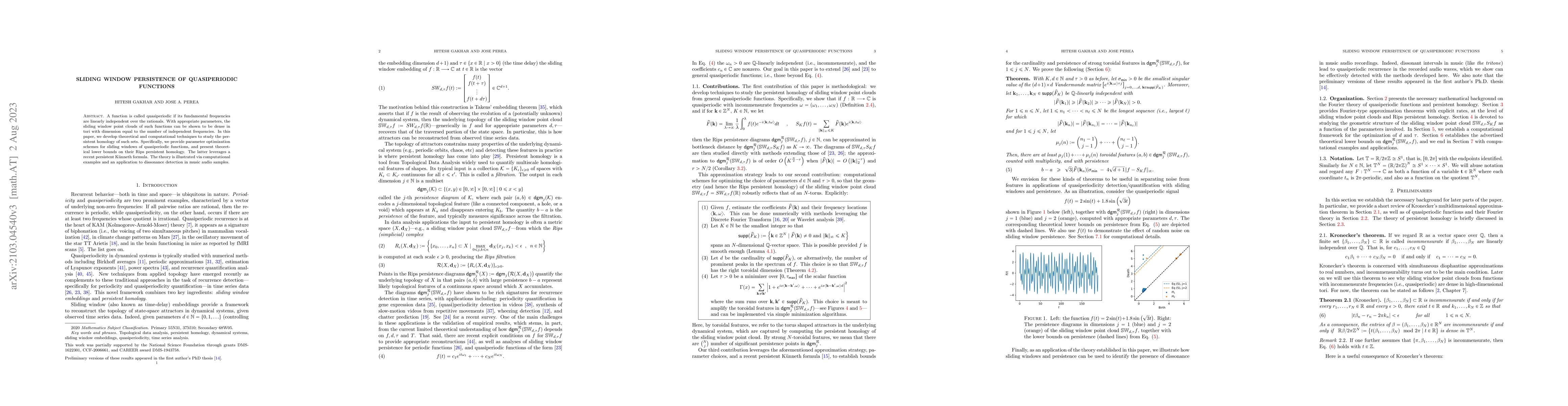 This paper explores the sliding window persistence of quasiperiodic functions, demonstrating that their point clouds are dense in tori. It develops techniques for optimizing sliding windows and provides theoretical lower bounds on their Rips persistent homology, illustrated with computational examples and an application to detecting dissonance in music.