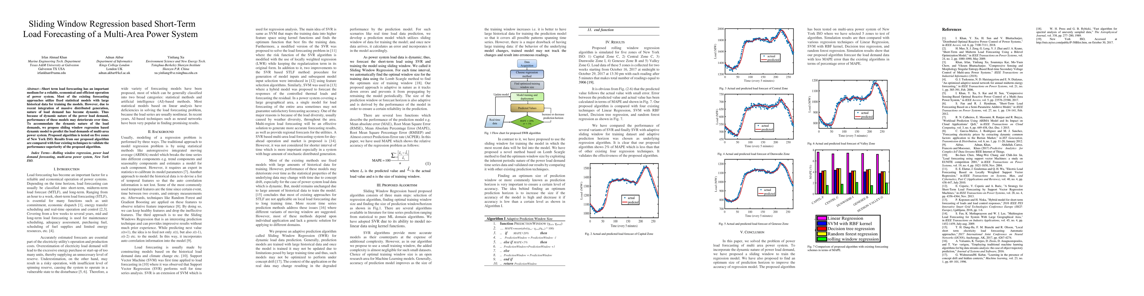 This paper proposes a sliding window regression model for short-term load forecasting in multi-area power systems, addressing the dynamic nature of load demands. The algorithm is tested on five zones of New York ISO, demonstrating superior performance compared to four existing forecasting techniques.