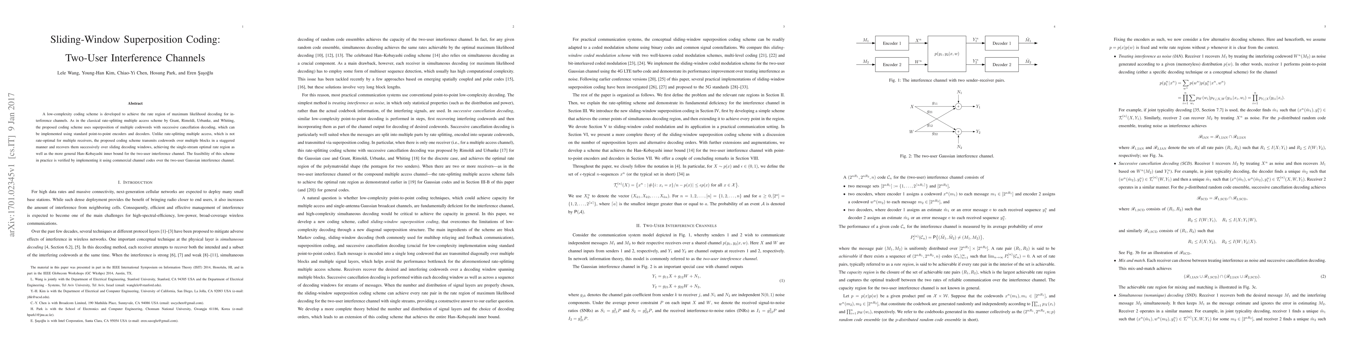 This paper presents a low-complexity coding scheme for two-user interference channels that achieves optimal rate regions through sliding-window superposition coding and successive cancellation, outperforming traditional rate-splitting multiple access. Practical feasibility is demonstrated via implementation using commercial channel codes.